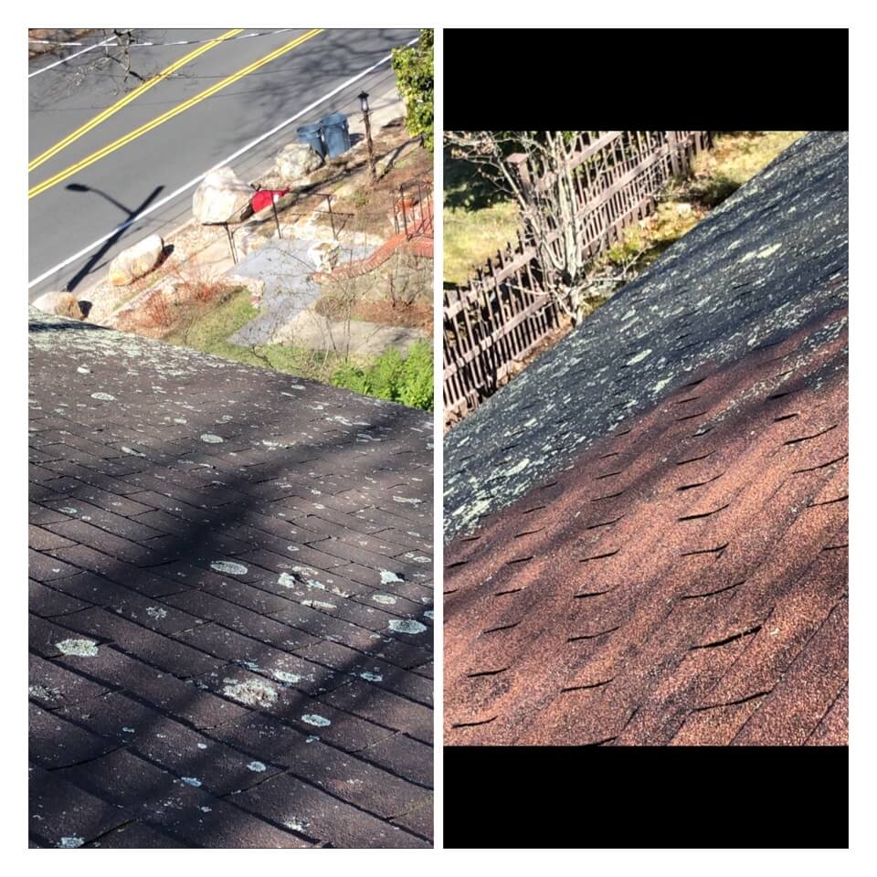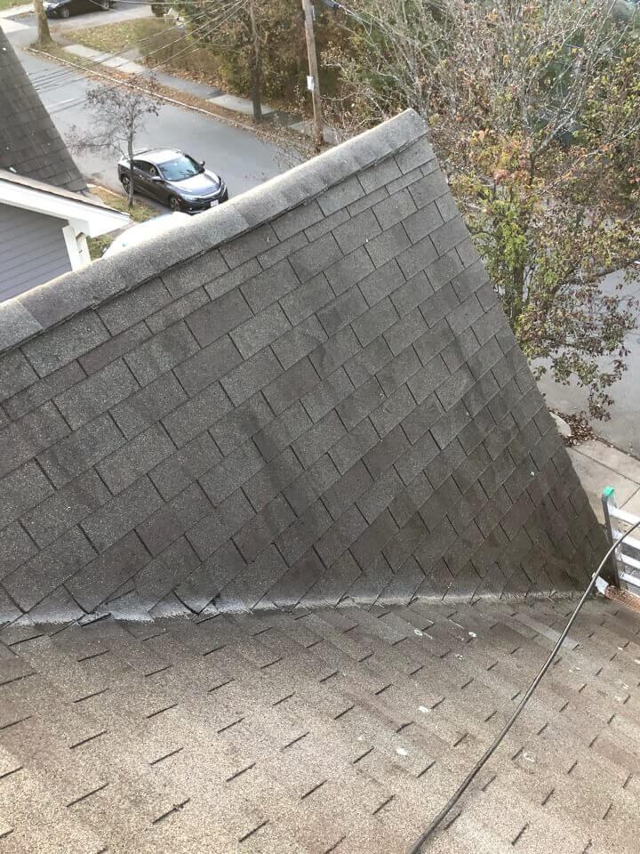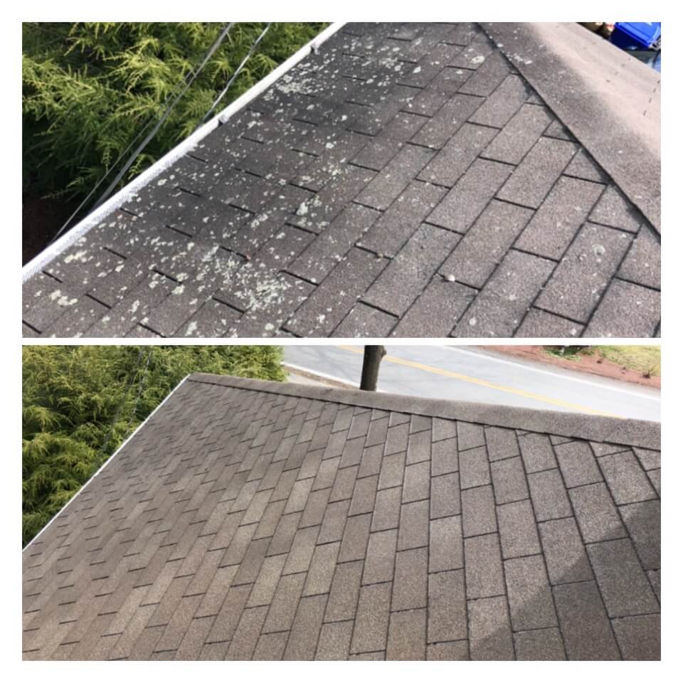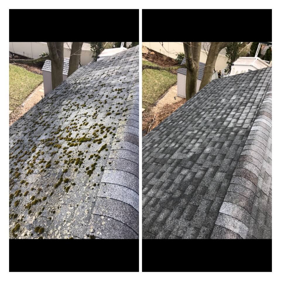 HiCleaners is the most experienced company in Boston, MA that deals with roof washing and roof soft washing. All of our employees are trained to recognize precise solution mixing ratios to provide you with the safest and most effective soft washing service. Roofs are a commonly neglected part of a house due to the fact that most people don’t have ladders to access it, so it is very easy to just leave it alone and forget about problems that may start to arise. Just like many home owners, discoloration and small bits of moss on a roof can be overlooked because of the misconception that it is just aesthetic. However, it isn’t just aesthetic, the moss slowly lifts the granules off the shingles which in turn shorten the life of the shingle. The moss also spreads, just like any bacteria if it is left alone for too long, it can quickly become a problem that spirals out of control. Call HiCleaners for a free quote, we only use the most advanced eco-friendly solutions and equipment to make sure the job is done right, for the safety of the employees, your plants, grass, pets, and children.